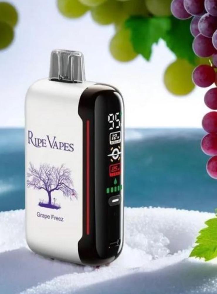ريب فيبس 20000 شفطة - Ripe vapes 20000 puff مع ميزة معزز نكهة بكويل من نوع Dual mesh كويل قابلة لإعادة الشحن بقوة 25 واط لجلسات لاتنسى.