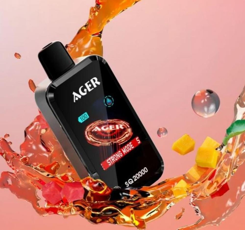 سحبة اجير 20000 شفطة - Ager 20000 Puff بقوة بطارية 850 مللي امبير قابلة لإعادة الشحمن من النوع تايب سي وسعة نكهة 24 مل.