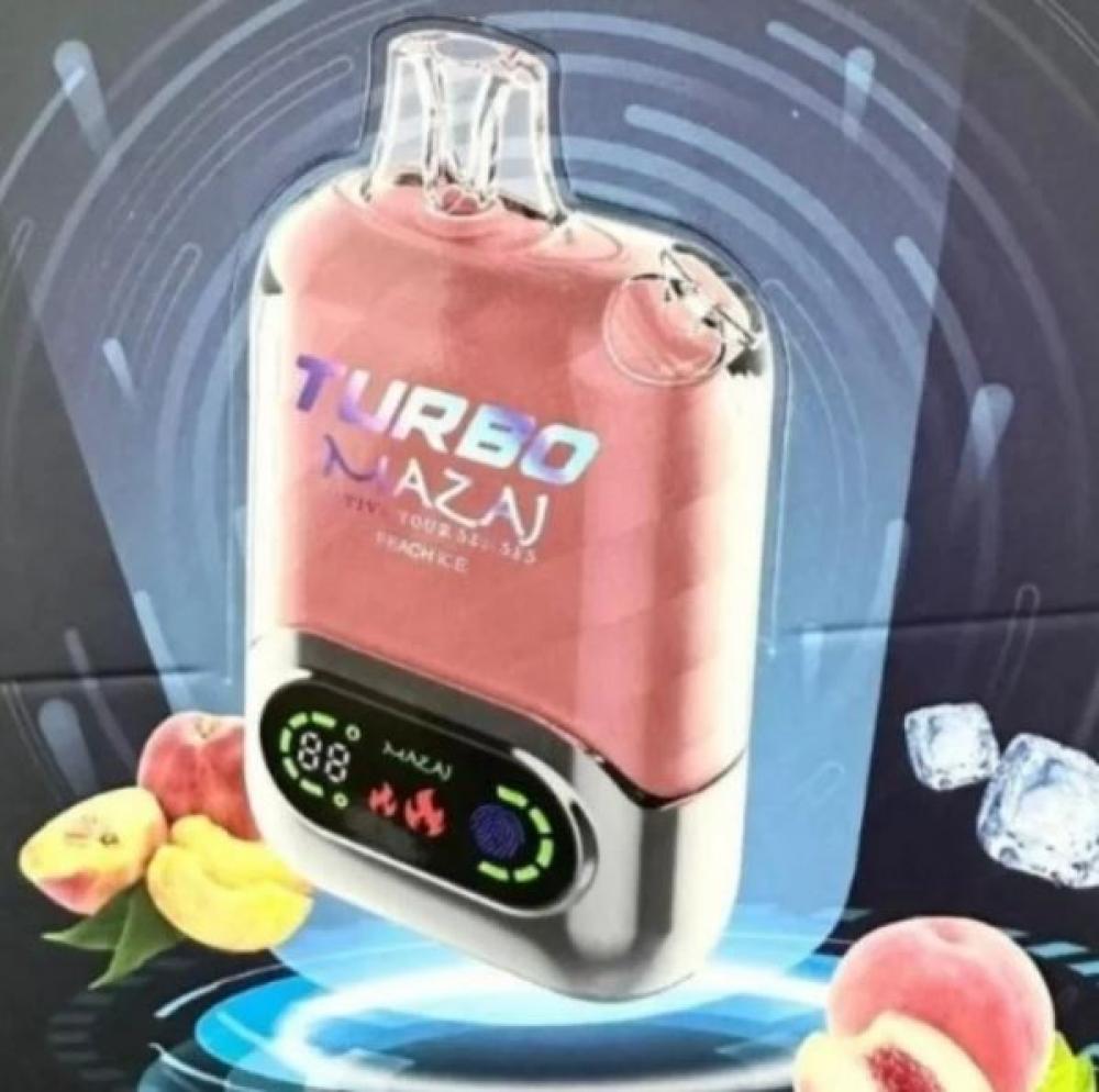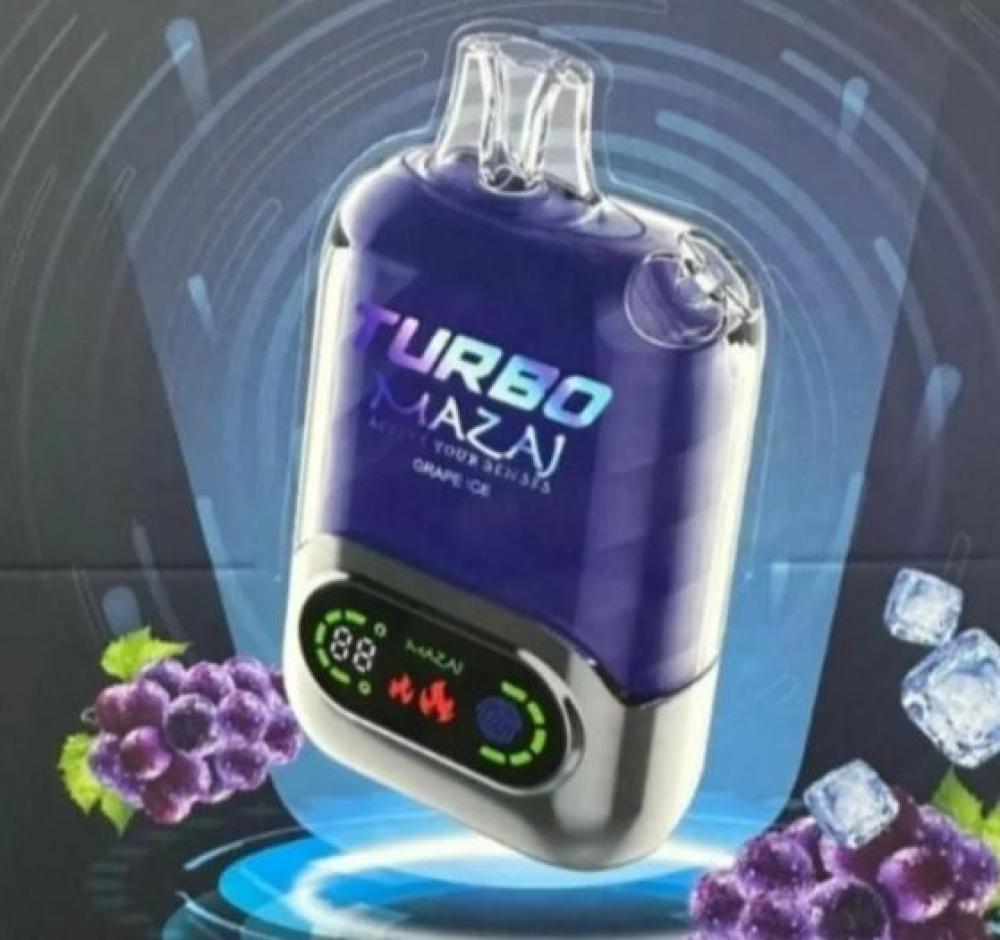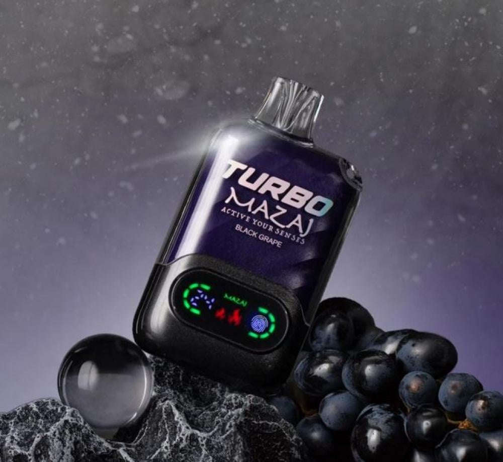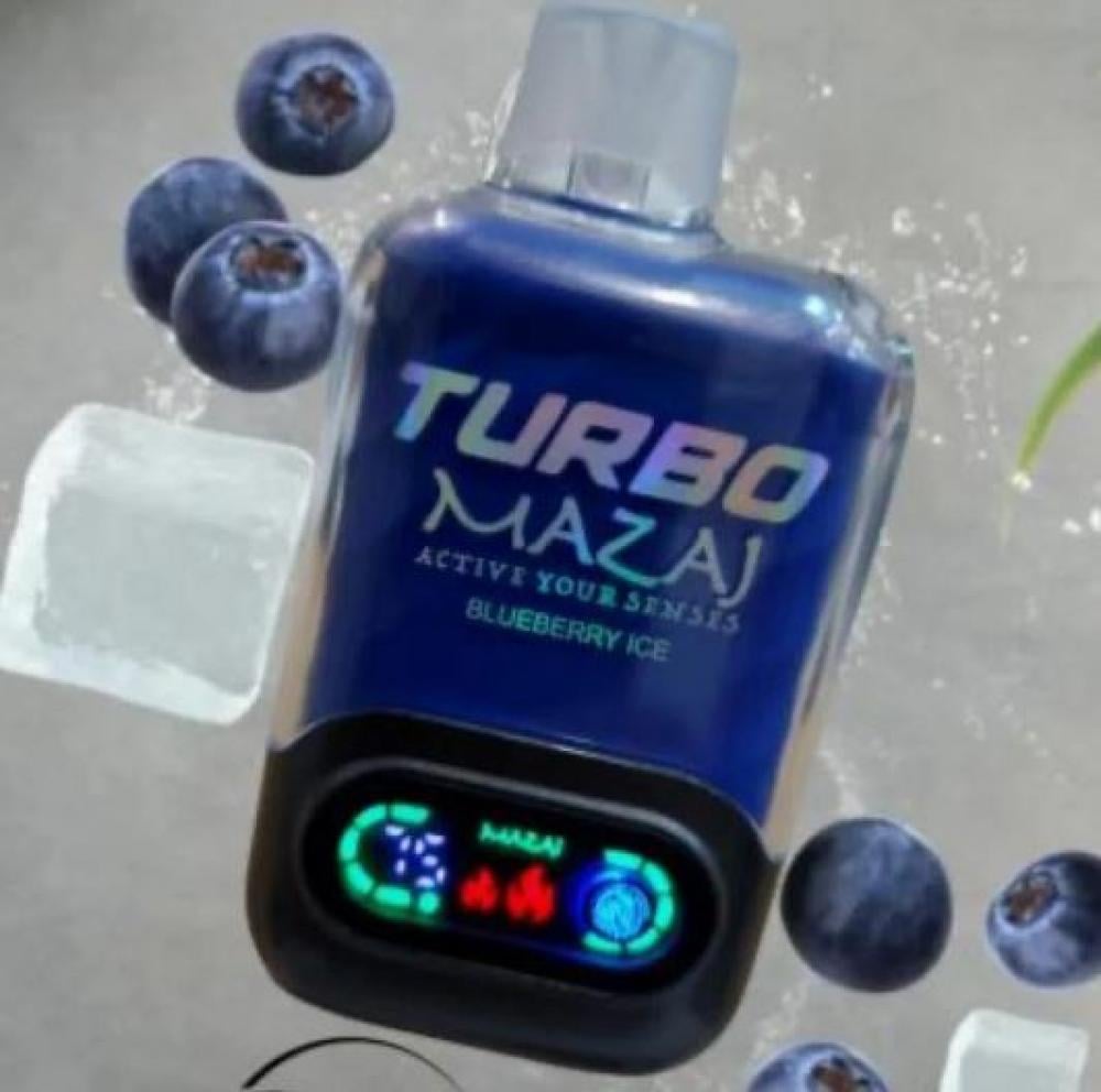 سحبة مزاج تيربو 15000 شفطة 50 نيكوتين - Mazaj Turbo 15000 Puff قابلة لإعادة الشحن وبقوة بطارية 850 مللي امبير وسعة نكهة 22 مل نظام تحكم بالهواء اير فلو.