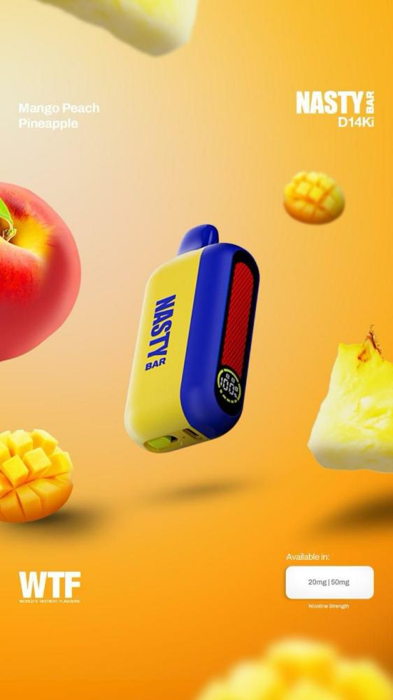 ناستي 14000 شفطة 50 نيكوتين - Nasty 14000 Puff 50 Nicotine بقوة بطارية 680 مللي امبير قابلة لإعادة الشحن من نوع سي وسعة نكهة 20 مل.